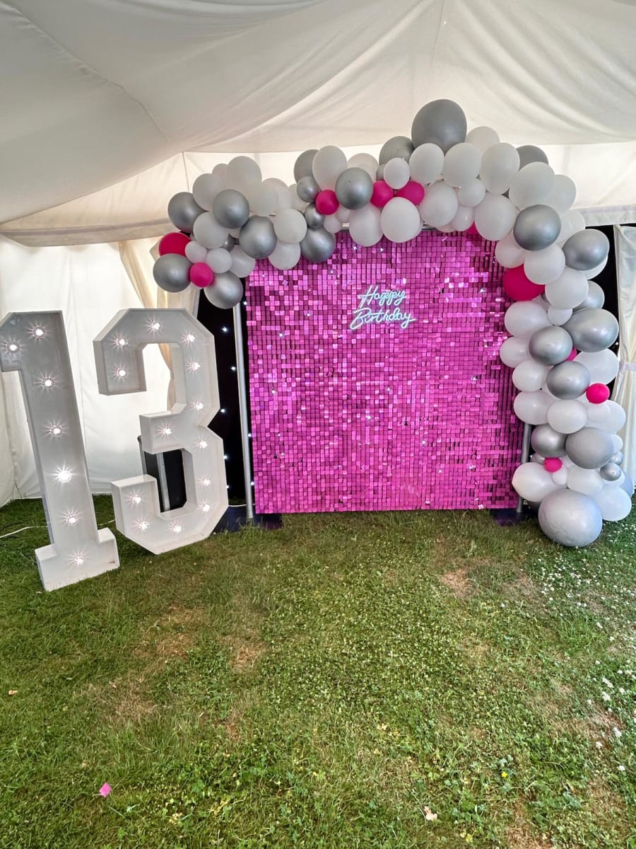 - Customisable Options: Enhance your backdrop with our popular add-ons like a light-up number, Happy Birthday neon sign, or a stunning balloon arch for a truly personalised touch.