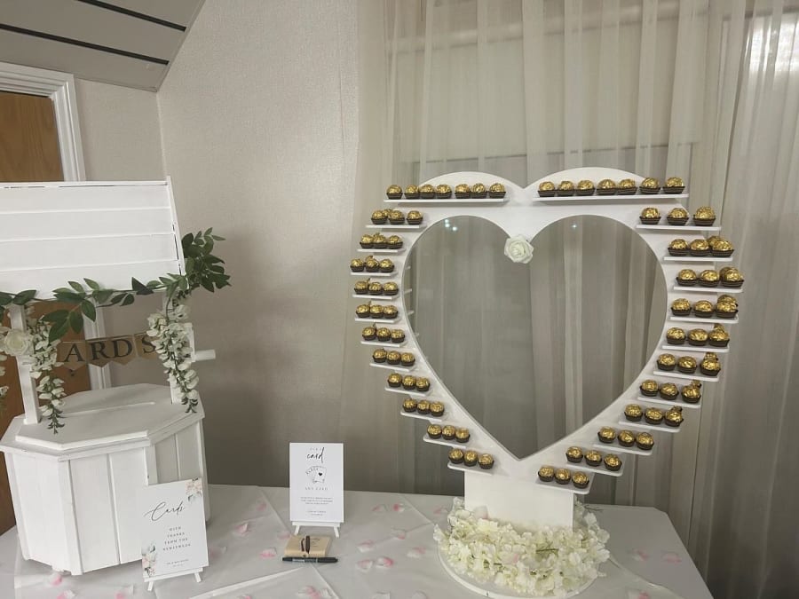 Add a touch of luxury and elegance to your special day with our Ferrero Rocher Stand in White. Designed to impress, this beautiful display is the perfect centrepiece for weddings, anniversaries, birthday parties, and all kinds of celebrations. Whether you’re looking to create a jaw-dropping dessert table or simply want to treat your guests to something extra special, our Ferrero Rocher stand is guaranteed to delight. 🍫✨