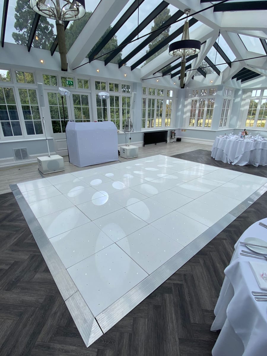 Looking for Starlit Dance Floor Hire Essex or Dance Floor Hire Essex? Contact us today to reserve the White Starlit Dance Floor 14 x 14 and make your event truly shine in Colchester, Essex, Chelmsford, Suffolk, Norfolk, and London! 💃🕺