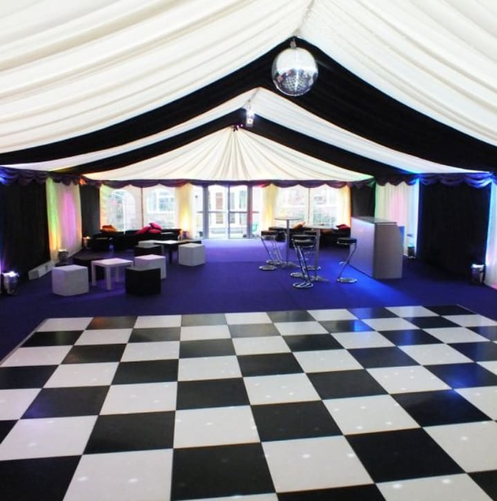 We specialise in Dance Floor Hire 16 x 16 Black & White Dance Floor in Colchester, Chelmsford, maldon, Southend on Sea, Essex, Suffolk, Hertfordshire. Fast quotes. Reliable delivery. Local knowledge. ๐