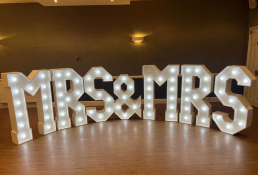 Light up Letters Hire 4ft Light up Mrs & Mrs Letters in Colchester, Maldon, Chelmsford, Witham, Brentwood, Romford, Essex, Suffolk