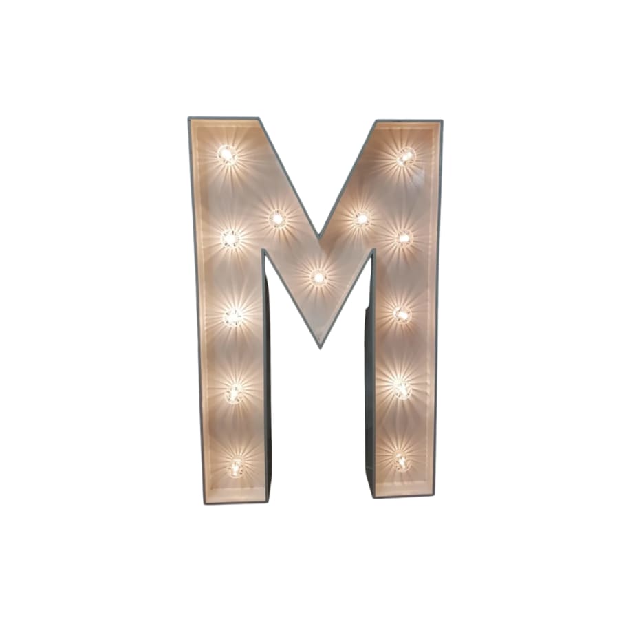Reserve the 4ft Light up Letter M today. Create a name in lights hire moment your guests will remember. ✨