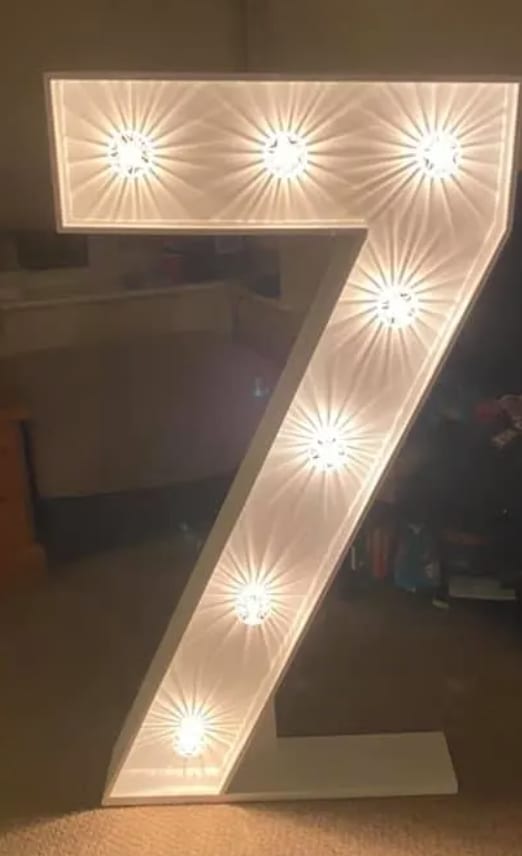 Make Your Event Shine with Our 4ft White Light Up Number 7 Hire ✨