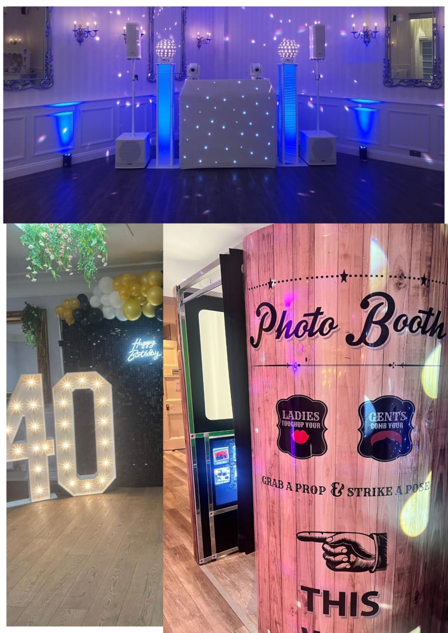 Make your event stand out with our Party Photo Package — a complete Party DJ packages solution for parties across Essex and Suffolk. 🎉 You get a professional party DJ for five hours, a lively photo booth for three hours, and striking décor: shimmer wall, light-up numbers, balloon arch, and happy Neon. 📸 Perfect for birthdays, anniversaries, and private celebrations.